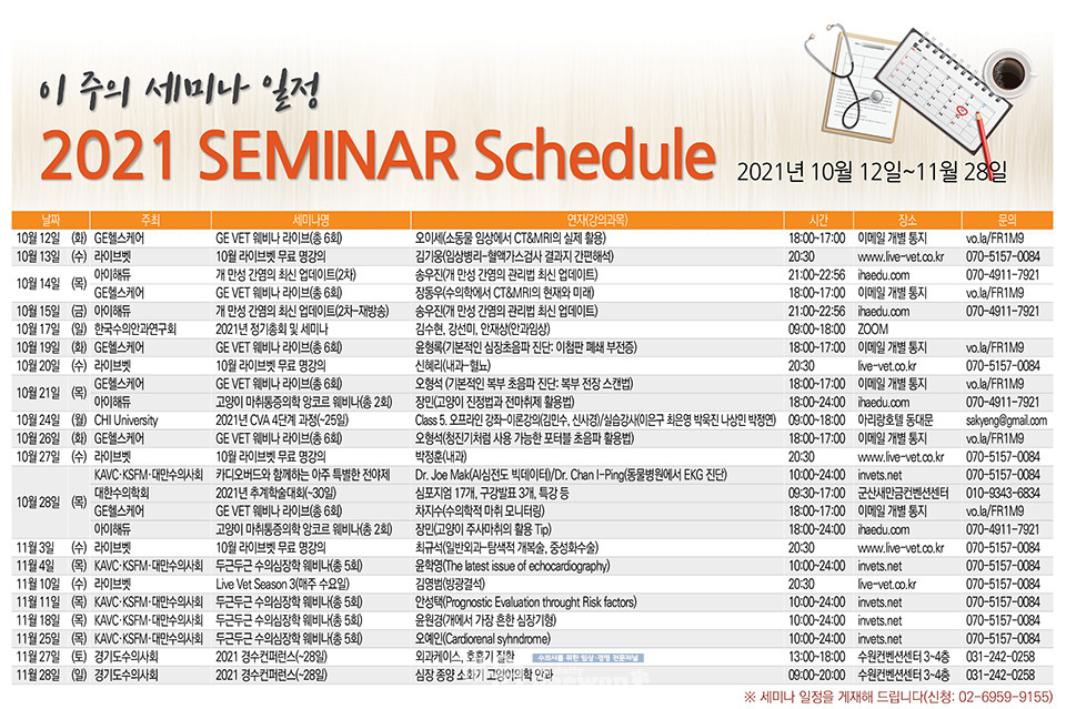[세미나 캘린더] 2021년 10월 12일~11월 28일