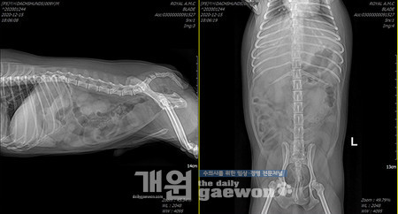수술후 약물을 이용하여 췌장과 간을 관리하였습니다; gabexate mesylate, L-ornithine-L-aspartate(LOLA), metronidazole 10mg/kg, bid., i.v., tramadol 2mg/kg, tid., i.v., marbofloxacin 3mg/kg, sid., i.v., cephradine 20mg/kg, tid., i.v., tachion 10mg/kg, bid., i.v., L- ornithine-L-aspartate(LOLA).