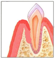 제가 한번 그려보았는데요, 그림과 같이 치은조직이 이 부분을 메우게 됩니다[fig 02]. 지지력이 있는 치주인대나 치조골의 healing은 상대적으로 없거나 적을 것이며, 그만큼 이의 안정성은 떨어지게 됩니다. 바로 여기서 GTR의 개념이 시작됩니다.
