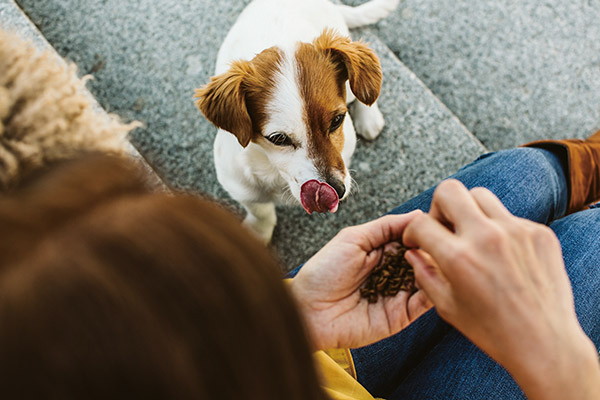 항상 식사 때마다 적절한 양의 음식을 제공함으로써 배고프거나 음식을 빼앗기지 않을 거라고 느끼게 해준다. 배고픈 개는 거의 항상 음식에 대한 충동 억제에 문제가 있다.