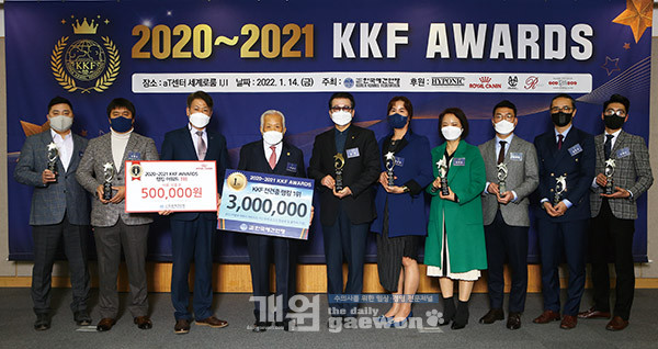 ‘KKF 어워즈‘는 한 해 동안 활약한 도그쇼 출진견, 애견브리더, 애견미용사, 애견핸들러 및 훈련사 등을 선정해 수상하는 국내 유일한 애견 관련 시상식으로, 이번 ‘KKF 어워즈’는 코로나19로 인해 ‘2020~2021 KKF 어워즈’로 통합 개최됐다.