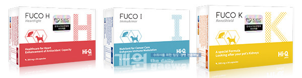 ‘올리고 후코이단’은 대만 ‘하이큐펫츠(Hi-Q pets)’ 제품으로 △종양 보조제 ‘후코아이(FUCO I)’ △심장 보조제 ‘후코에이치(FUCO H)’ △신장 보조제 ‘후코케이(FUCO K)’ 3가지다.