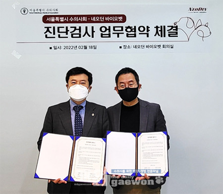 서울시수의사회(회장 최영민, 이하 서수회)와 (주)네오딘 바이오벳(대표 안덕준, 이하 네오딘)이 지난 2월 21일 업무협약을 체결, 서울지역 수의사들에게 양질의 진단검사를 제공하고, 수의진단 검사의 수준 향상을 비롯한 양 기관의 동반 발전을 위해 협력하기로 했다.