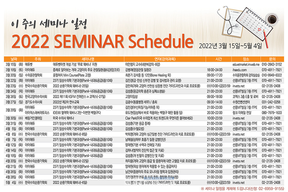 [세미나 캘린더] 2022년 3월 15일~5월 4일