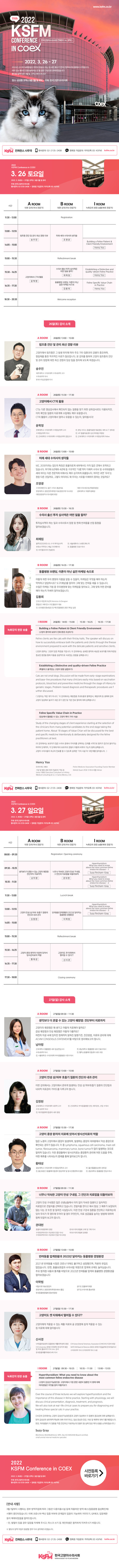 3월 26일(토)~27일(일) 양일간 코엑스 3층 E홀에서 진행될 이번 ‘KSFM 컨퍼런스’는 코로나19로 인해 2년여 만에 열리는 대면 개최로서 국내 산업의 중심인 코엑스에서 수의 컨퍼런스 최초로 개최한다는 데 그 의미가 크다.