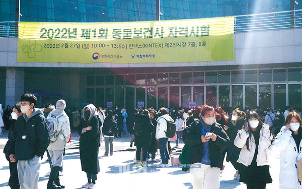 ‘제1회 동물보건사 자격시험’이 지난달 27일 경기 고양시 킨텍스에서 실시돼 3천여 명이 몰리는 뜨거운 열기를 나타냈다.