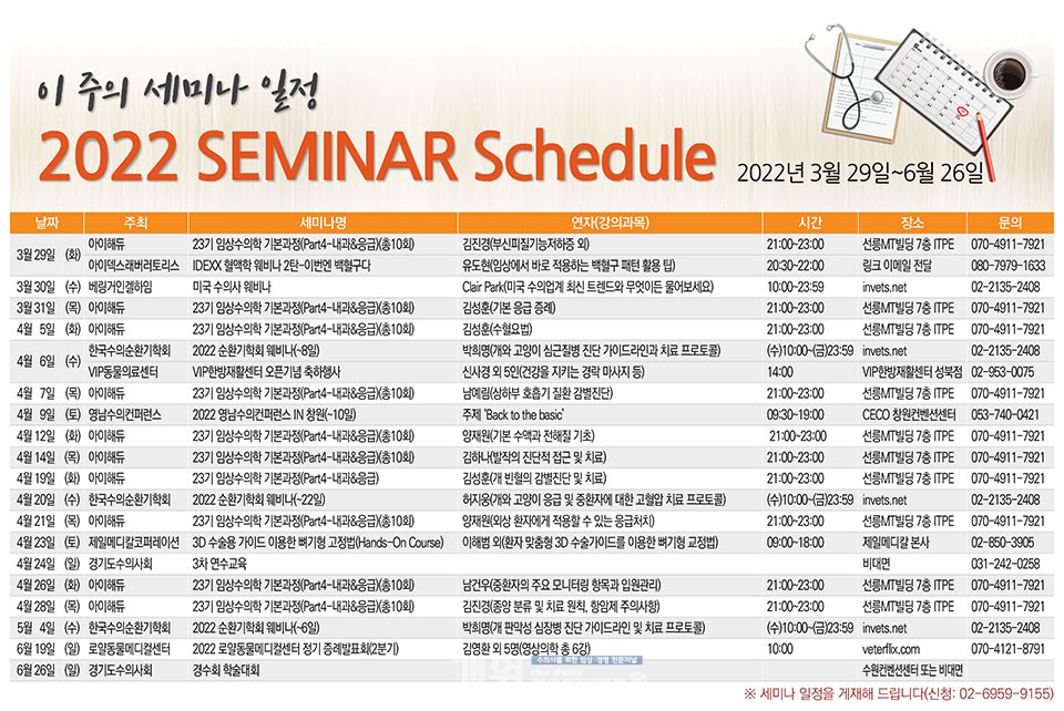 [세미나 캘린더] 2022년 3월 29일~6월 26일