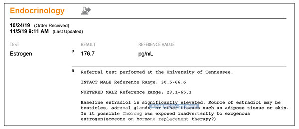 일련의 진단을 통하여 Sertoli cell tumor로 발생하는 에스트로겐 과다증(Hyperestrogenism)이 전립선의 에스트로겐 수용체에 작용하여 편평상피 화생을 유발한다는 논거를 확인하였다.