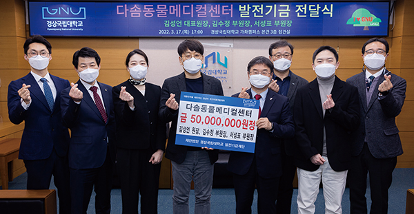 부산 다솜동물메디컬센터(원장 김성언)가 경상국립대학교(총장 권순기)에 대학발전기금 5,000만 원을 출연했다.