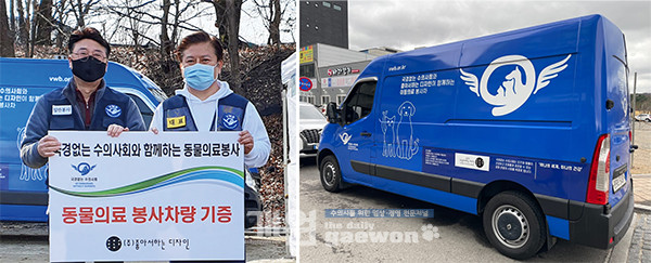 특히 좋아서하는디자인(대표 오인석)에서 특별히 제작한 봉사 지원 차량을 국경없는수의사회에 기증해 감사패를 받기도 했다.