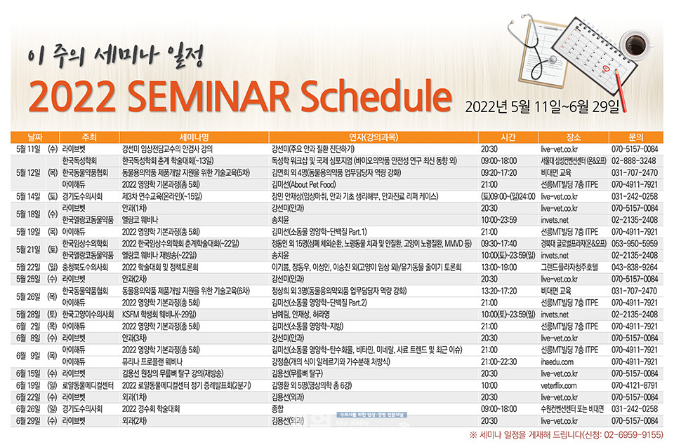 [세미나 캘린더] 2022년 5월 11일~6월 29일