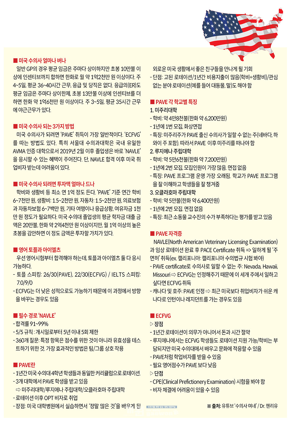 국내 임상수의사들의 경쟁이 갈수록 치열해지면서 해외로 눈을 돌리는 젊은 수의사들이 많아지고 있다. 특히 미국의 경우 임상수의사 수가 부족한 데다 주 4일 근무에 초봉만 1억 원이 넘는 것으로 알려지면서 미국 진출에 대한 관심이 더욱 커지고 있다.