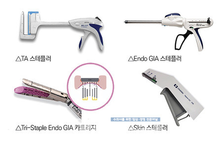 용도가 다 다른데, ‘TA 스테플러’는 간엽, 폐엽 제거를 쉽게 도와주는 용도로 사용이 간편하고, ‘GIA 스테플러’는 봉합과 커팅이 가능하다.