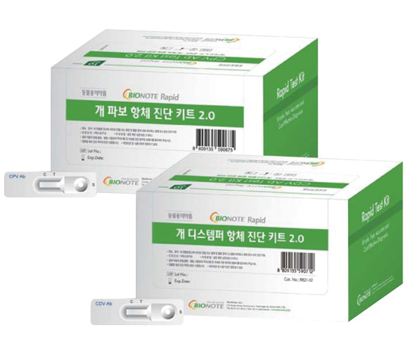 바이오노트가 출시한 ‘래피드 개 파보 항체 진단키트 2.0’과 ‘래피드 개 디스템퍼 항체 진단키트 2.0’이 화제다.