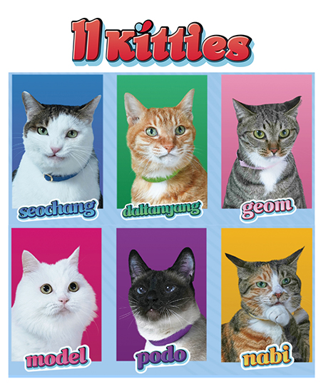 ‘11키티즈’는 메인 멤버 6마리와 연습생 5마리로 구성됐다. 메인 멤버가 입양되면 연습생이 메인 멤버가 된다.