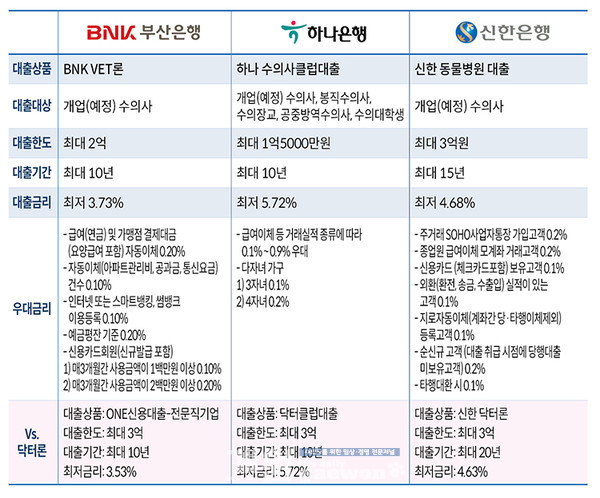 그에 따른 혜택으로 부산은행은 수의사 전용 신용대출 한도를 금융권 최고 수준인 최대 2억까지 지원한다. 금리는 최대 0.50%p 특별 감면해 최저 연 3.73%를 제공한다.