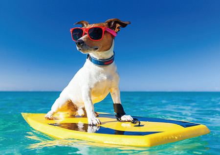 ‘SUP’는 서핑보드 위에 서서 패들을 저어가며 파도를 잡는 해양스포츠다. 반려인 한 명에 반려견 한 마리가 원칙이며, 애견구명조끼가 함께 제공된다.