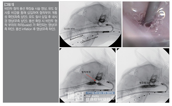 이러한 재협착을 막기 위해 시술 부위의 mitomycin C 점적을 하는 증례가 보고되어 있으며, 본 증례에서도 마찬가지로 풍선 확장 후에 mitomycin C 점적을 통해 최대한 재협착을 방지하고자 노력하였다.