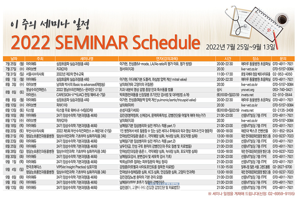 [세미나 캘린더] 2022년 7월 25일~9월 13일