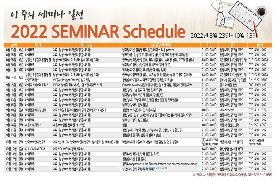 [세미나 캘린더] 2022년 8월 23일~10월 13일