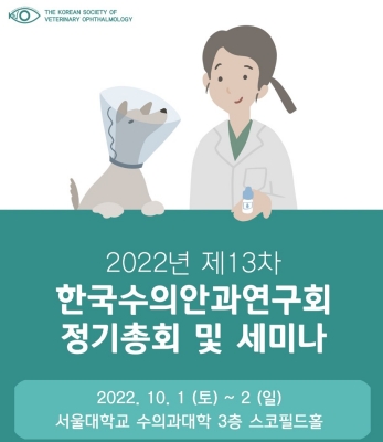 한국수의안과연구회(회장 정만복)가 오는 10월 1~2일 서울대학교 수의과대학 3층 스코필드홀에서 세미나 및 정기총회를 개최한다.