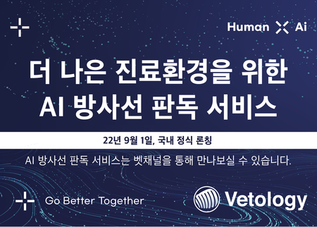 미국 현지 동물병원에서 활발히 사용 중인 인공지능 방사선 판독서비스 ‘VETOLOGY(이하 벳톨로지)’가 수의사 지식 나눔 플랫폼 ‘VETCHANNEL(이하 벳채널)’을 통해 오는 9월 1일(목) 국내 론칭한다.