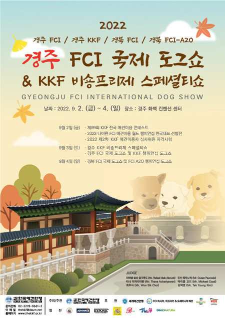 (사)한국애견연맹(총재 송하경)이 ‘2022 경주 FCI 국제 도그쇼’를 오는 9월 3일(토)부터 4일(일)까지 양일간 경주 화백컨벤션센터(HICO)에서 개최한다.
