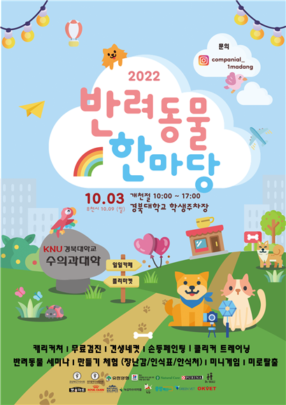 3년 만에 대면으로 열리는 ‘경북대학교 반려동물 한마당’은 32년간 이어져 온 반려동물 참여형 페스티벌로 학생들이 주재하는 비영리적 행사다.