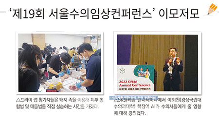 이밖에 설채현(놀로 행동클리닉) 원장의 ‘동물병원에서 가장 많이 만나는 행동학’과 Dr. Henry Yoo(Western University)가 강의한 ‘성공적인 동물병원 운영 방안’은 참신하다는 평가를 받으며 많은 참가자들의 시선을 끌었다.