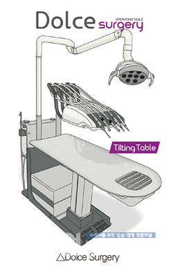‘Dolce Surgery’는 높이 조절은 물론 각도 조절(틸팅) 기능까지 추가해 사용이 편리하고, 기본 사양인 8구 LED Light는 간이 무영등으로 손색없을 만큼의 조도를 자랑, 손쉽게 각도와 높이 조절이 가능하다. 또한 Bed형 덮개 이용 시 일반 수술대로도 사용 가능한 스틸 상판은 두꺼운 스테인리스를 사용해 고급스러움과 실용성을 고루 갖췄으며, 치과 진료 시 반드시 필요한 배수장치를 테이블 밑에 탈착식으로 설치해 배관 호스를 제거, 고장의 위험을 낮췄다.