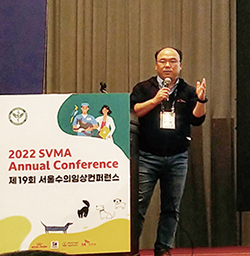 오이세(SKY동물메디컬센터) 원장이 지난 22일 SK텔레콤 본사에서 열린 ‘엑스칼리버’ 출시 기념 기자간담회에서 “‘엑스칼리버’는 어려운 영상진단 문제를 주관식에서 5지 선다 객관식으로 바꿔 진단을 더욱 쉽게 해준다”고 말했다.