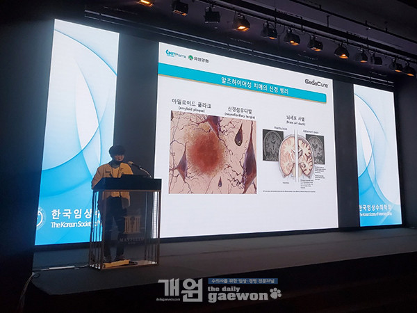 최동준 연구원은 인지기능장애 증후군의 임상증상과 함께 ‘제다큐어’의 안전성과 식이역 반응, 질병 조절 효과를 설명하고, 행동 변화에 대한 실험 결과를 소개했다.
