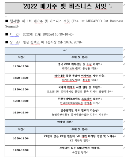 - 반려동물산업 발전을 위한 ‘제1회 메가주 펫 비즈니스 서밋’ 동시 개최