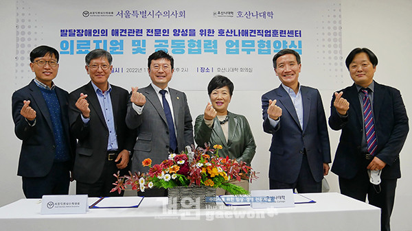서울시수의사회(회장 최영민)가 지난 11월 2일 호산나대학(학장 이동귀)과 발달장애인의 애견 관련 전문인 양성을 위한 업무협약을 체결했다.