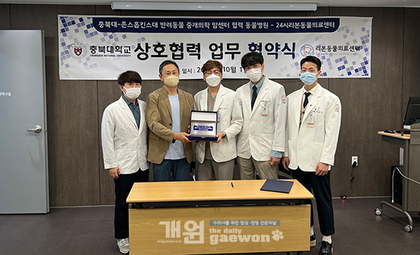 협약식에는 김수종 충북대 동물의학연구소장을 비롯해 24시리본동물의료센터 이영재, 이종원, 이상문, 김현호 원장 등 관계자들이 참석해 자리를 빛냈다.