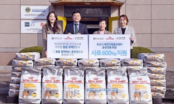 서울특별시수의사회(회장 최영민)는 지난 11월 2일 호산나대학(학장 이동귀)과 맺었던 의료지원 및 공동협력을 위한 MOU의 일환으로 로얄캐닌코리아와 함께 훈련견을 위한 사료 600kg을 지원했다.