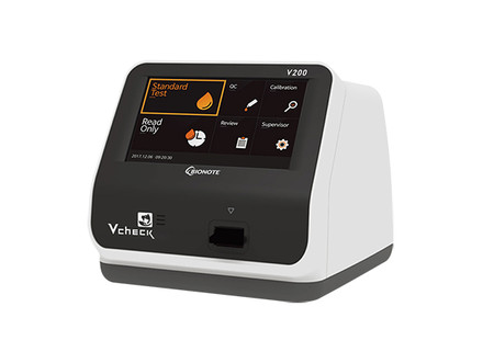 형광 면역분석 장비 ‘Vcheck F’는 월등한 정확도를 보이는 형광물질인 유로피움(Europium)을 사용해 노이즈 신호의 간섭 없이 다양한 바이오마커(생물학적으로 정상인 과정과 병리적인 과정을 객관적으로 측정 평가할 수 있는 지표)를 정량적으로 정확하게 측정할 수 있다.