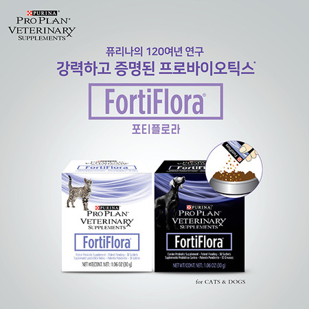 강아지용과 고양이용 2종으로 출시된 ‘포티플로라’는 네슬레퓨리나가 국내에 처음 선보이는 반려동물 전용 프로바이오틱스 보충제다.