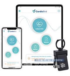‘카디오버드’는 전용 디바이스를 통해 1분 이내에 심전도 데이터를 측정할 수 있고, 전용 앱을 통해 환자정보 입력 및 심전도 데이터 업로드가 가능하다.