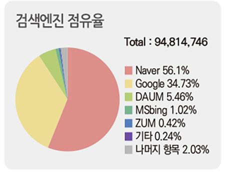 다음은 2021년 1월~2021년 12월 기준 검색엔진 점유율을 분석한 결과이다.