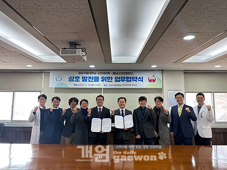 경상국립대학교 수의과대학(학장 이희천)과 영남수의컨퍼런스 조직위원회(위원장 장환수)가 지난 2월 14일 상호 발전을 위한 업무협약을 체결했다.