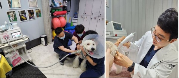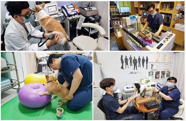 우리 병원은 슬개골 탈구, TPLO, 골절 등의 수술이 많다 보니 자연스레 재활 케이스가 많아졌다. 아이들한테 가장 효과적인 치료 모듈을 적용해 반복적인 치료를 하면서 세부적으로 질환별 프로토콜을 정립하게 됐다.
