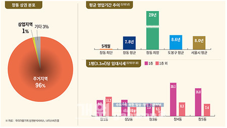 특히 창4동의 경우 건물 1층 외 임대료는 8만 3천 원대인 것에 비해 1층 평균 임대료는 20만 1천 원으로 3배 가까운 차이를 보이며, 강남권과 비슷한 수준을 나타내고 있다.