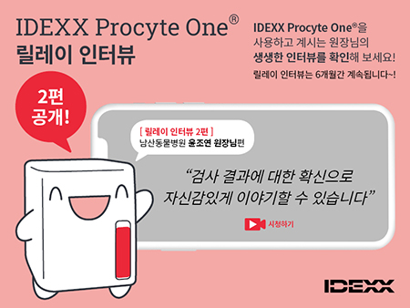 이번 캠페인은 국내 수의사들에게 ‘ProCyte One’에 대한 이해를 돕기 위해 시작한 아이덱스의 릴레이 인터뷰로 실제 해당 장비를 사용 중인 동물병원 원장들이 동료 수의사에게 사용 계기와 경험을 전달하는 형식으로 구성된 영상이다.