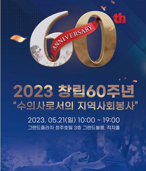 충북수의사회(회장 이승근)가 창립 60주년을 맞아 오는 5월 21일(일) 그랜드플라자 청주호텔에서 기념식 및 ‘콜라보 컨퍼런스’를 개최한다.