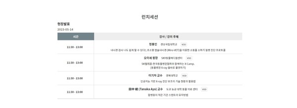 이 밖에도 오전 11시 30분부터 오후 1시까지 SK텔레콤, Intro Medic, M.I.Techdml 런치 세미나도 준비돼 있다. 이기자(경북대) 교수가 ‘인공지능 기반 X-ray 진단 보조의 기술 현황과 활용법’을, 오이세(SKY동물메디컬센터) 원장이 ‘SK텔레콤-한국동물병원협회와 함께하는 X Camp’를, Tanaka Aya(도쿄농공대 동물의료센터) 교수가 ‘고양이 방광염 최신경향 업데이트’를, 정동인(경상대) 교수가 ‘상부 및 하부 호흡기 질환에서 영상진단에서 활용’에 대해 강의할 예정이다.