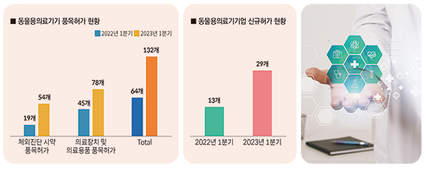 올해 1분기(1~3월) 동물용의료기기 허가는 지난해 1분기와 비교했을 때 품목허가 건수 증가폭이 두드러졌다.