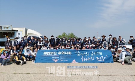 (사)국경없는수의사회(대표 김재영)가 지난 4월 30일 아산시 선장면 삽교천 일대에서 해양 쓰레기 수거 봉사를 진행했다.