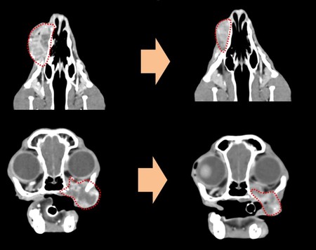반려견의 구강종양은 비교적 자주 발생하는 종양으로 상악골이나 하악골의 골침습이 심한 경우 수술적 절제가 불가능한 경우가 많다. 특히 구강이라는 위치로 인해 종양이 큰 경우 구강 출혈이나 연하장애가 발생하여 환자의 삶의 질이 많이 떨어지게 된다.