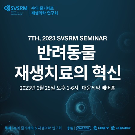 수의줄기세포&재생의학 연구회(회장 박천식, 이하 SVSRM)의 ‘제7회 세미나’가 오는 6월 25일 대웅제약 베어홀에서 개최된다.